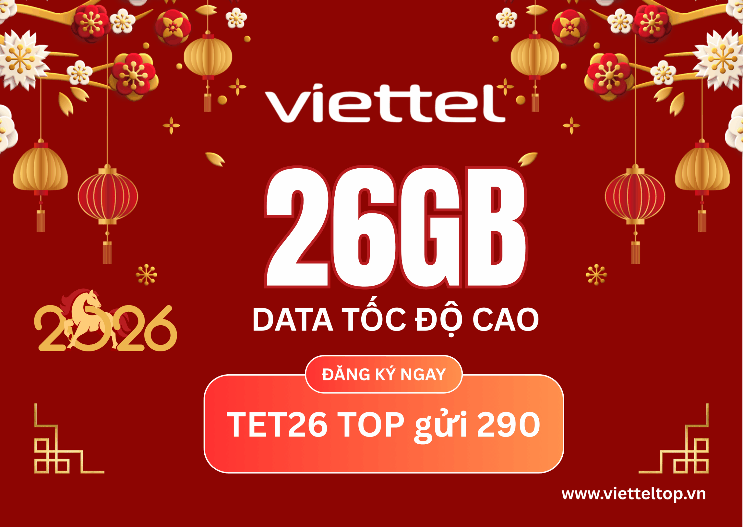 [HOT 2026] Đăng ký gói TET26 Viettel: Nhận 26GB Data & 260 Phút Gọi – Đón Tết Bính Ngọ Cực Đỉnh