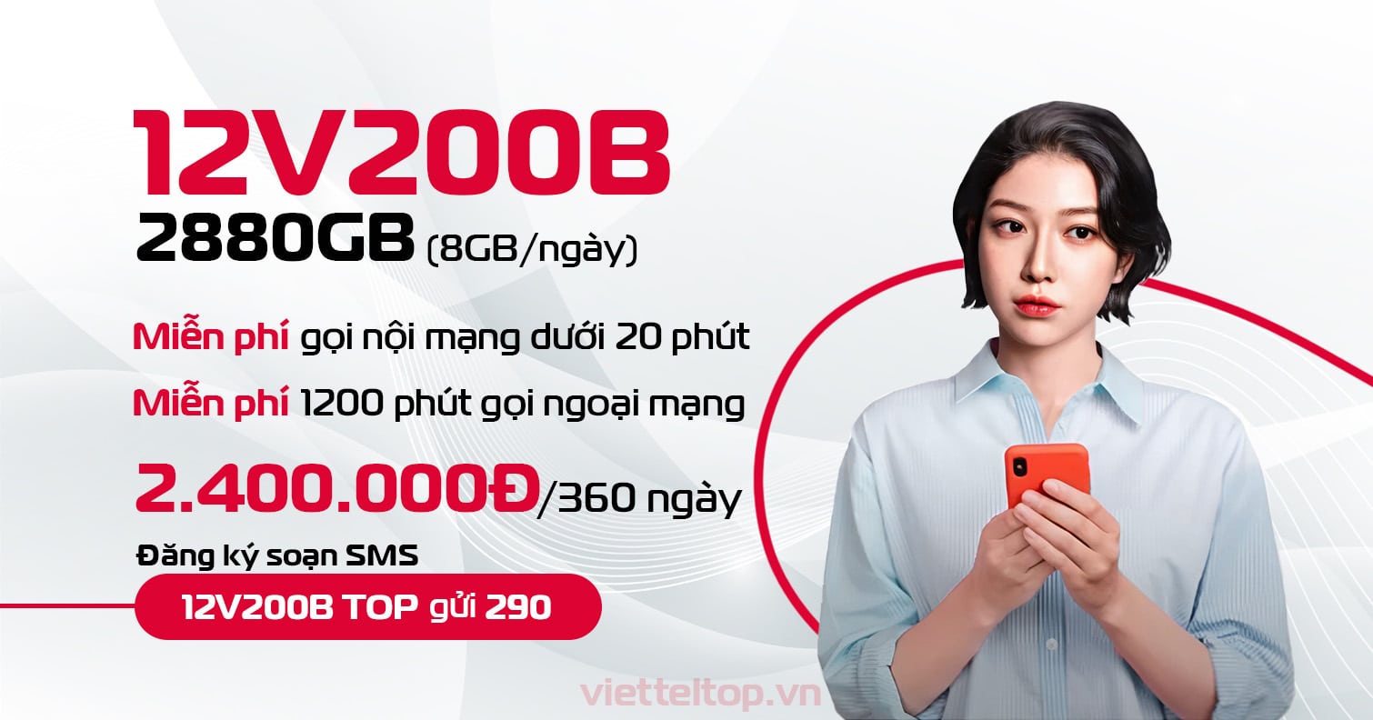 Nhiều thuê bao Viettel có nhu cầu sử dụng lượng data lớn và ưu đãi gọi thoại trong thời gian dài đang quan tâm đến gói combo 200.000 đồng/tháng với chu kỳ lên tới 12 tháng. Nhằm đáp ứng nhóm khách hàng này đã ra mắt gói Viettel 12V200B dành cho thuê bao trả trước kích hoạt từ đầu năm 2025. Đây được xem là một trong những gói cước dài hạn có ưu đãi data lớn nhất hiện nay của nhà mạng.