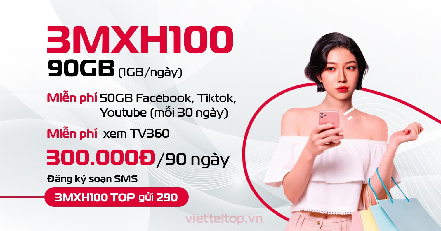 📱 Soạn 3MXH100 TOP gửi 290 để đăng ký ngay hôm nay và tận hưởng trải nghiệm 4G Viettel mượt mà, tiết kiệm tối đa!