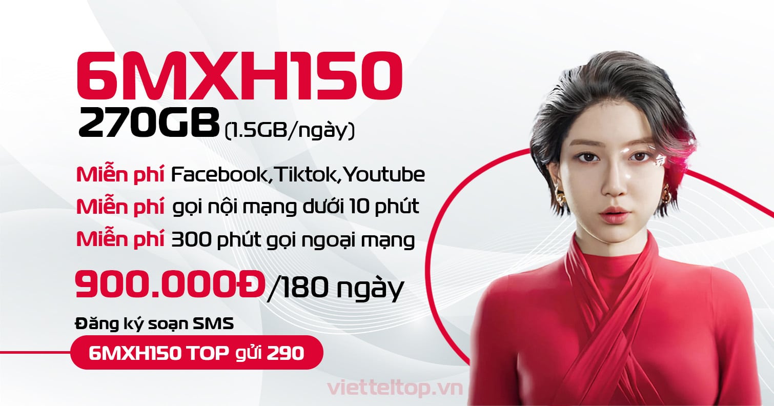 Nếu bạn đang tìm một gói 4G truy cập siêu mượt trong thời gian dài và có thể sử dụng mạng xã hội không giới hạn, thì 6MXH150 Viettel chắc chắn là lựa chọn đáng để đăng ký ngay hôm nay.