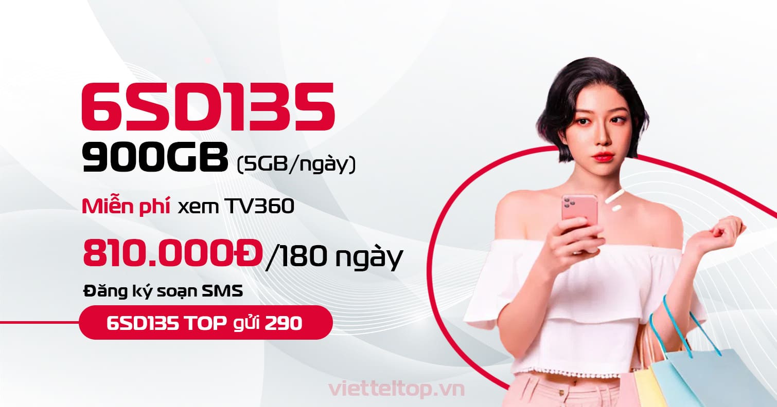 | 6SD135 (6 tháng) | 810.000đ | Đăng ký | 900GB/180 ngày (5GB/ngày) + TV360 Basic |