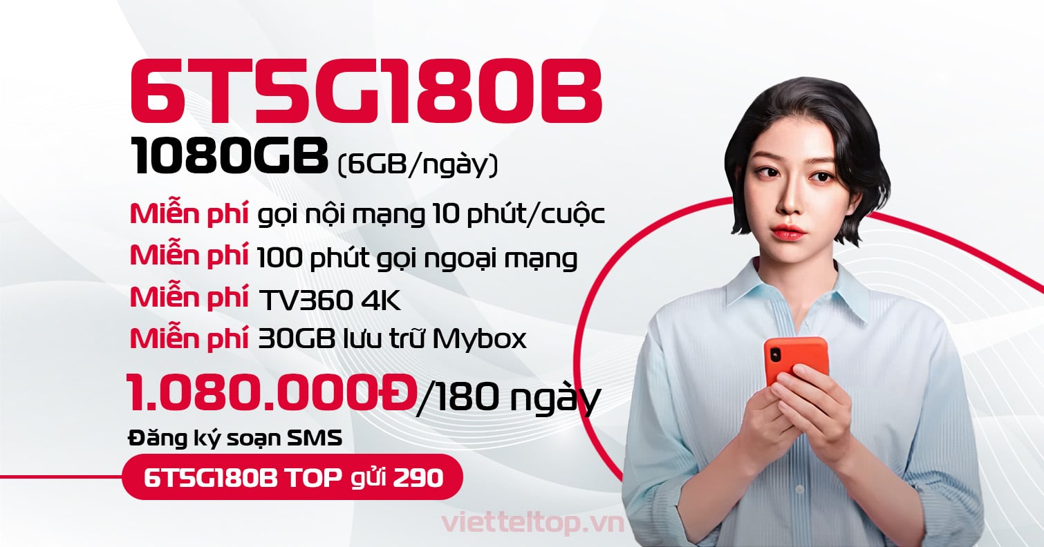 Đăng ký qua SMS: Soạn: 6T5G180B TOP gửi 290