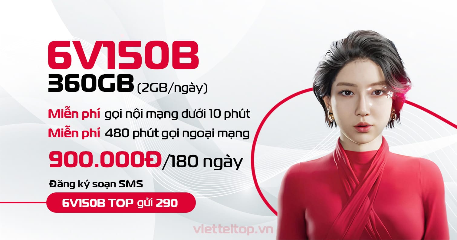 Bạn là người dùng mạng di động Viettel đang tìm kiếm giải pháp sử dụng data 4G tốc độ cao và gọi thoại nội ngoại mạng tiết kiệm? Gói 6V150B Viettel 2025 là lựa chọn lý tưởng dành cho thuê bao trả trước kích hoạt mới từ đầu năm 2025, cung cấp trải nghiệm internet mượt mà suốt 6 tháng chỉ với 900.000 đồng.