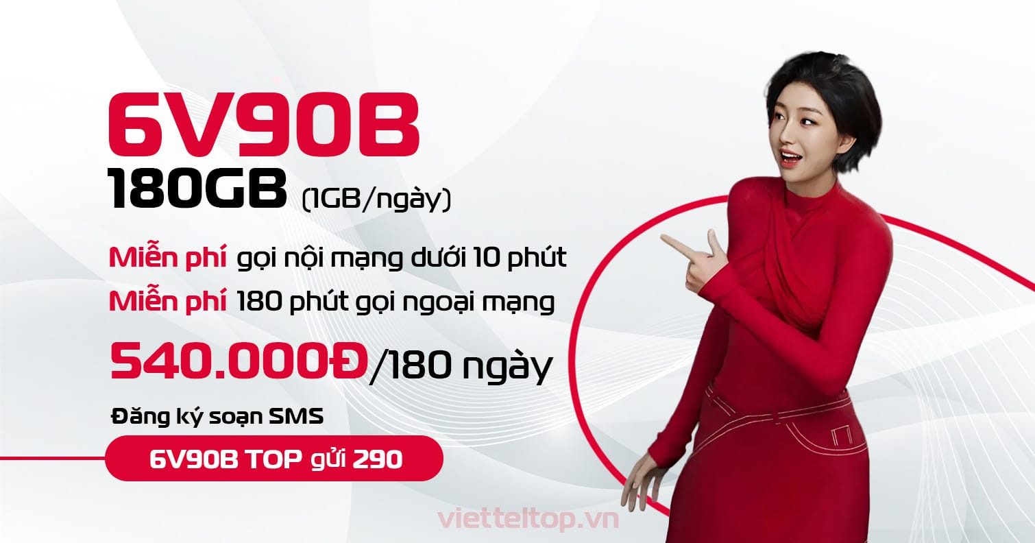 | 6V90B | 540.000đ | 180GB/180 ngày | Miễn phí các cuộc gọi nội mạng <10 phút | 180 phút ngoại mạng | |