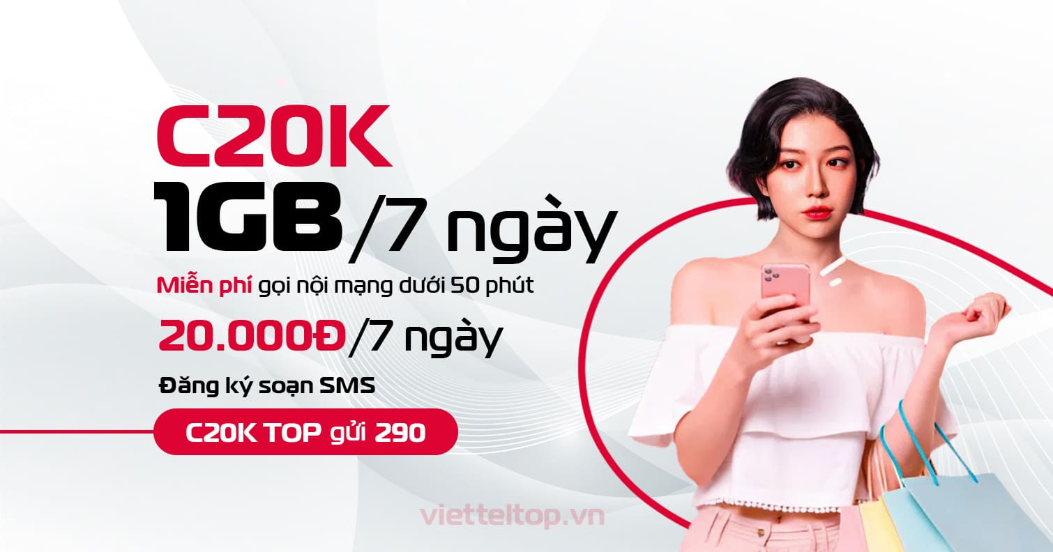 Gói C20K Viettel là giải pháp tiết kiệm, phù hợp với những ai cần 1GB data/tuần để lướt web cơ bản và 50 phút gọi nội mạng để giữ liên lạc thường xuyên. Chỉ với 20.000đ, bạn đã có ngay một gói cước tiện lợi, tối ưu cả data lẫn gọi thoại.
