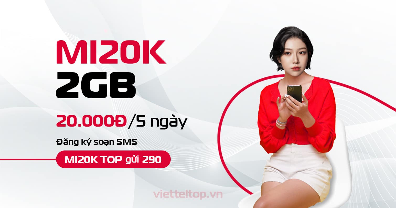 Bạn đang tìm một gói cước 4G giá rẻ để lướt web, xem video hay dùng mạng xã hội mọi lúc mọi nơi? MI20K Viettel chính là lựa chọn lý tưởng. Chỉ với 20.000đ, người dùng nhận ngay 2GB tốc độ cao sử dụng trong 5 ngày, phù hợp cho nhu cầu kết nối internet ngắn hạn với chi phí tiết kiệm.