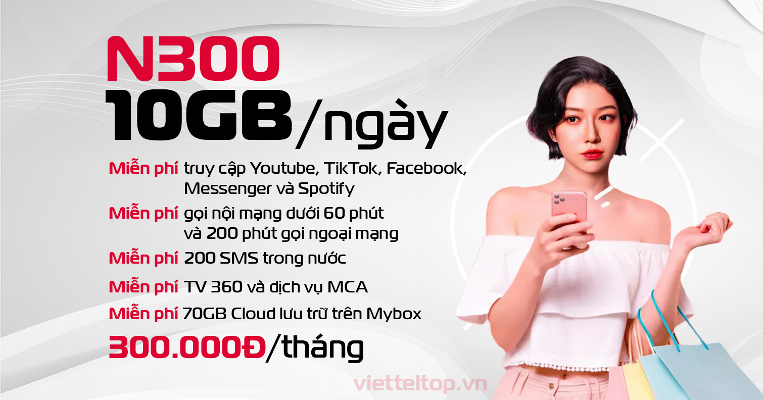 Nếu bạn đang tìm kiếm một gói cước trả sau Viettel với dung lượng lớn và nhiều ưu đãi hấp dẫn, N300 trả sau Viettel chính là lựa chọn lý tưởng. Bài viết này cung cấp đầy đủ thông tin về gói cước, cách đăng ký SIM trả sau, lợi ích khi sử dụng và hướng dẫn thanh toán cước chi tiết.