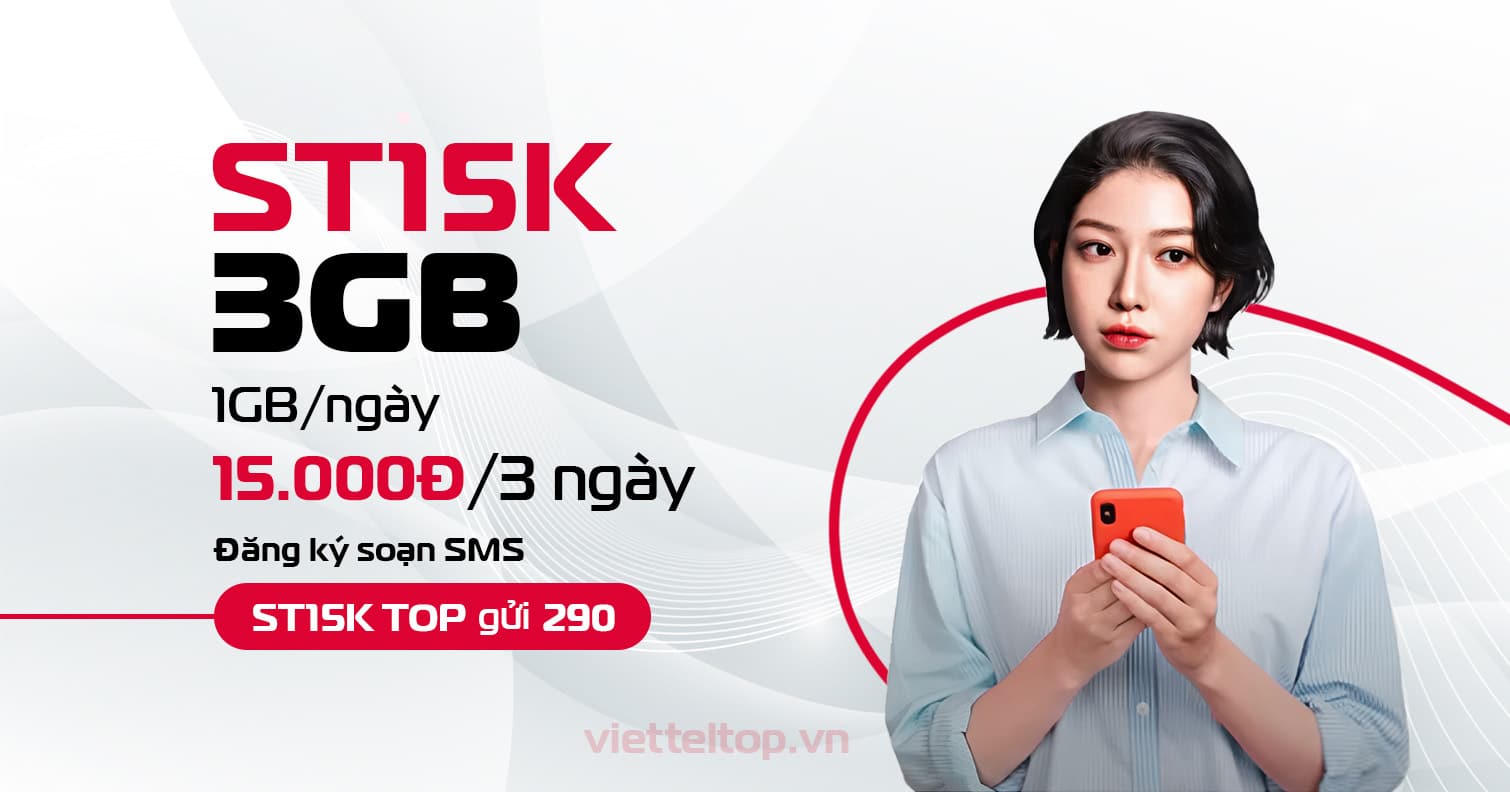 Bạn đang tìm một gói cước 4G Viettel giá rẻ, dung lượng đủ dùng cho nhu cầu cơ bản hàng ngày? ST15K Viettel chính là lựa chọn lý tưởng. Chỉ với 15.000đ, thuê bao di động có ngay 3GB data tốc độ cao trong 3 ngày, tương đương 1GB/ngày để lướt web, xem video, học tập và giải trí mọi lúc mọi nơi.