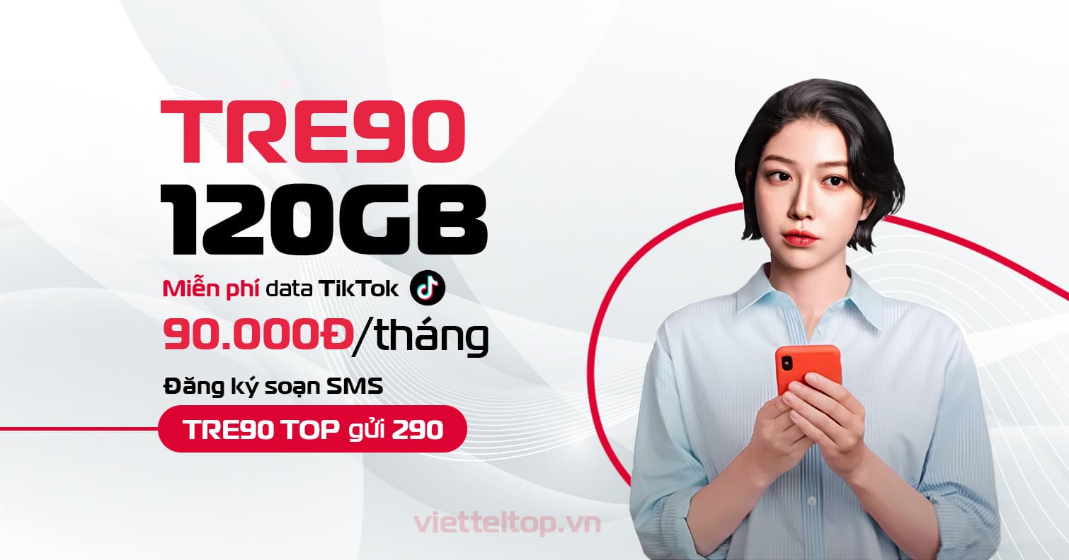 TRE90 là gói cước 4G Viettel dành riêng cho học sinh – sinh viên trong độ tuổi 14 – 24, mang đến 120GB data/tháng (tương đương 4GB/ngày) cùng ưu đãi miễn phí data TikTok. Với chỉ 90.000đ/tháng, đây từng là lựa chọn lý tưởng cho thế hệ trẻ yêu thích kết nối, học tập và giải trí online mọi lúc, mọi nơi.