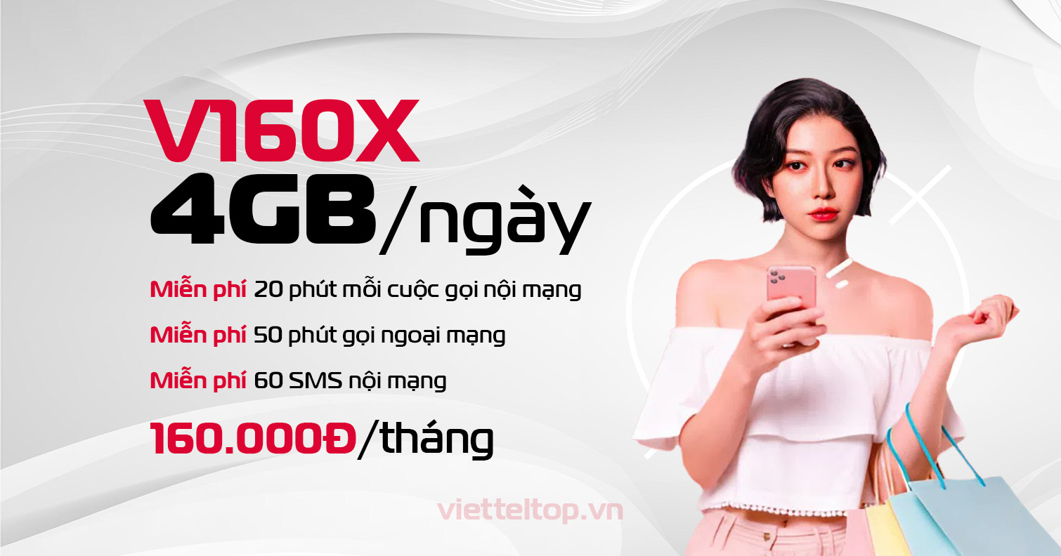 Gói cước V160X là lựa chọn lý tưởng dành cho khách hàng có nhu cầu sử dụng data và gọi thoại thường xuyên. Với chi phí hợp lý và ưu đãi phong phú, gói cước giúp bạn thoải mái kết nối và làm việc mọi lúc, mọi nơi.