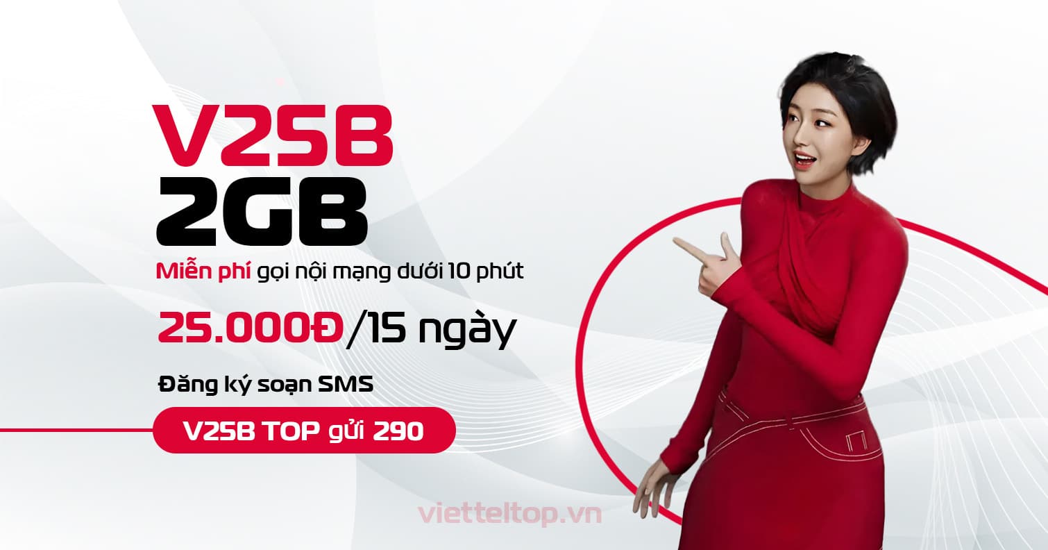 Đăng ký ngay hôm nay bằng cú pháp: V25B TOP gửi 290 để trải nghiệm tiện ích từ Viettel.